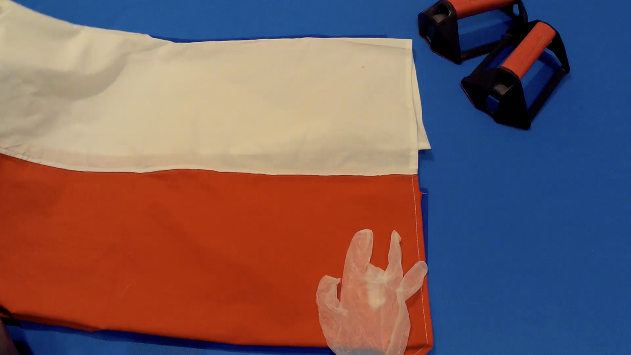 - otočte vlajku na škaredější stranu a vložte gumovou rukavici // turn the flag to the uglier side and insert the rubber glove