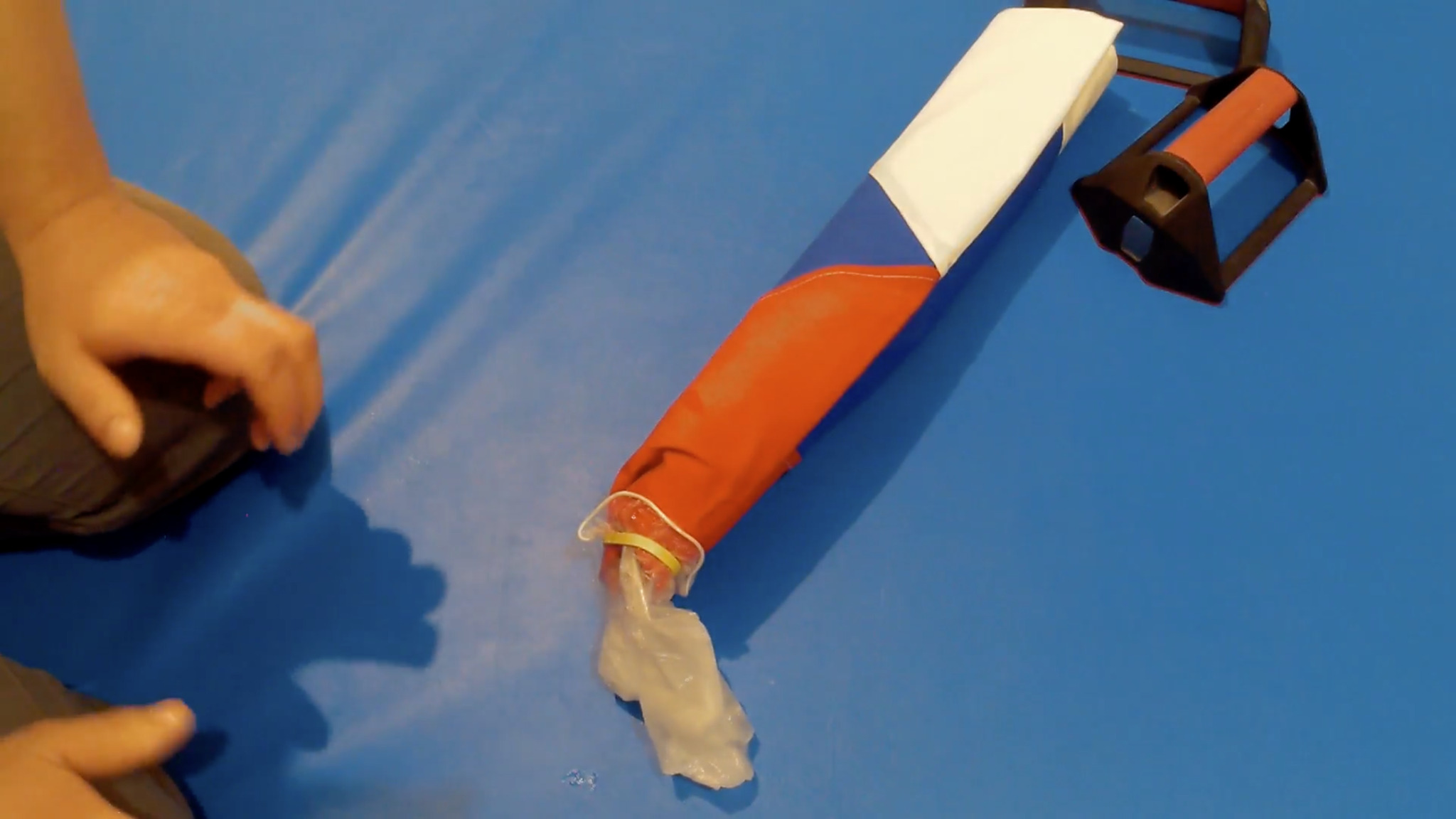 - vyhrňte okraje rukavice a zajistěte je gumičkou // roll up the edges of the glove and secure them with a rubber band